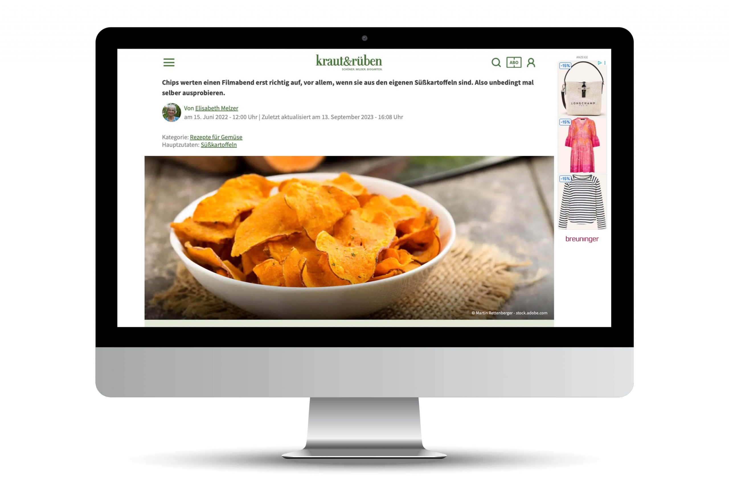 Es hat mich sehr gefreut, dass mein Bild ‚Süßkartoffelchips‘ für eine Rezeptseite von Kraut & Rüben lizenziert wurde.